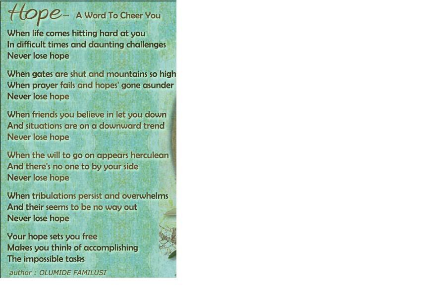 User-agent: Mediapartners-Google* Disallow: Inspiring stories, Poems and quotes.: HOPE-A WORD TO CHEER YOU